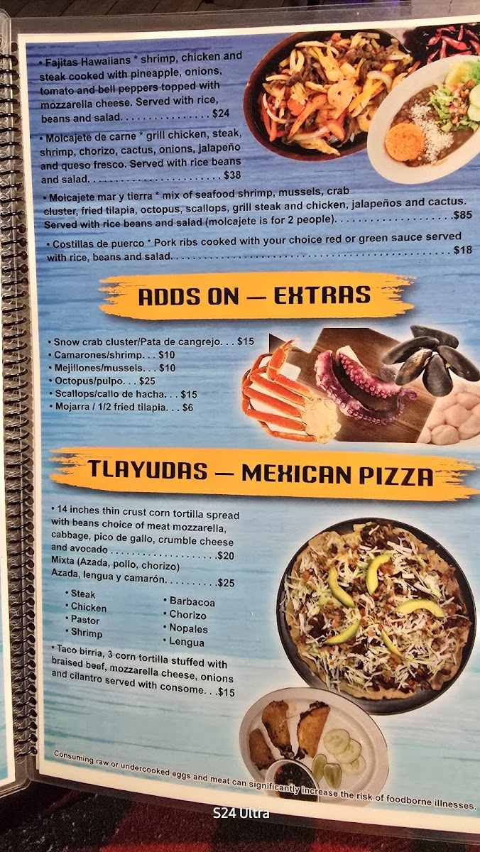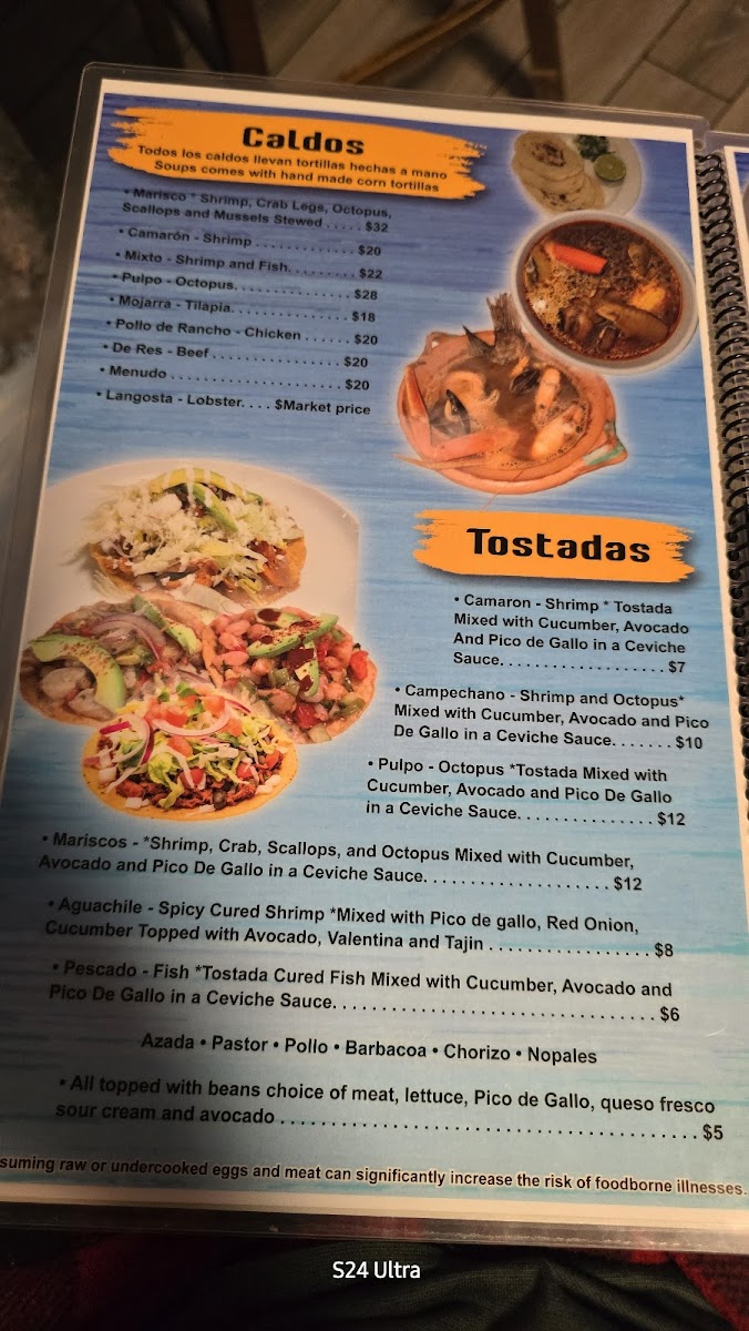 From a reviewer’s perspective, the menu at Restaurante La Costa offers an impressively broad selection that highlights authentic Mexican flavors across every category. The Kids’ Menu keeps things simple with options like Quesadilla De Queso and Empanada De Queso, while the tostadas-such as Tostada - Birria, Tostada - Asada, and Tostada - Pastor-deliver bold, satisfying bites. Classic comfort dishes like Enchiladas Verde Y Rojas and soups including Caldo De Res and Caldo De Pollo add depth to the offerings. Seafood lovers will appreciate specialties like Camarones A La Diabla, Camarones Al Chipotle, and the rich Filete Relleno De Mariscos, alongside refreshing cocktails such as Coctel - Camaron Shrimp and Aguachile. The menu also shines with hearty staples like Carne Asada, Bistec A La Mexicana, and customizable favorites including Burrito Birria, Quesadilla Pastor, and Tlayuda Asada. Street-food classics-Taco Barbacoa, Taco Pastor, and Sope - Birria-round out the experience, while sides like Guacamole, Arroz, and Papas Fritas complement every meal. Even without listed prices, the variety and authenticity make the menu feel both abundant and approachable, leaving a strong impression of a restaurant that caters to diverse tastes while staying true to its roots.